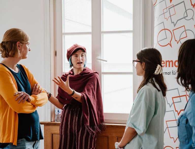 Als Mediatorin, demoSlam Trainerin und Prozessmoderatorin gestalte ich Räume, die das ermöglichen und Menschen wieder aufeinander zugehen lassen.